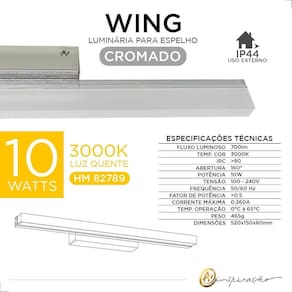Arandela Wing Luminária Para Espelho Banheiro Ip44 10W Led