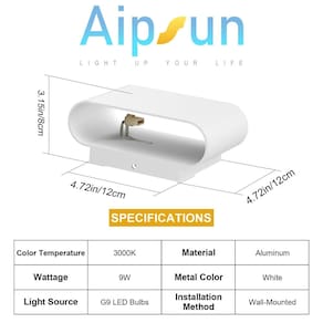 Especificações das luzes de parede interna: Potência: 9W Material: Alumínio branco de alta qualidade Temperatura de cor: 3000K branco quente Fontes de luz e tipo de lâmpada: lâmpada LED G9 9W (incluída) Tipo: arandelas de parede modernas e minimalistas Direção da luz: luzes de parede para cima e para baixo Tensão de entrada: 110-240V Lúmen: 900LM Vida útil: > 50.000 horas - ??Macio e caseiro?As luminárias de parede internas são fornecidas com uma lâmpada LED G9 de 9 W de economia de energia e sem cintilação (branco quente 3000K) sem interruptor. A lâmpada pode ser substituída, o que é de baixa potência e ecológico, economizando dinheiro. Sem bateria operada. - ??Alumínio de alta qualidade?Moldura de alumínio branco, forte resistência à corrosão, não enferruja e desbota facilmente. A luz de saída dupla tem alta transmissão de luz, iluminação para cima e para baixo, suaviza a iluminação e o cuidado da saúde dos olhos. A luz branca apresenta artesanato e durabilidade superiores. A tecnologia LED avançada garante uma iluminação eficiente e duradoura. - ??Fácil de instalar? Serve para caixa de junção padrão dos EUA. Os arandelas de parede de LED interiores são fáceis de montar, instalação completa em apenas 3 etapas. Todo o ajuste incluído. Oferecendo funcionalidade e estilo moderno, eles elevam perfeitamente diversos ambientes com o mínimo de esforço. - ??Design moderno?O design exclusivo dos arandelas de parede de LED combina perfeitamente com várias cenas, além de iluminar seu quarto, mas também trazer uma vida mais elegante. - ??Suporte 100%?A equipe da Aipsun sempre oferece aos clientes a melhor experiência de produto e o serviço pós-venda da mais alta qualidade. Fique tranquilo ao comprar, nosso atendimento ao cliente resolverá seu problema dentro de 24 horas. Nosso compromisso com a excelência em embalagens e serviços garante sua satisfação em cada passo do caminho.
