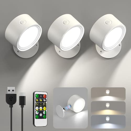 Luzes LED de parede Lightbiz Lâmpadas de parede e arandelas com design simples, mas amplamente aplicação: Este candeeiro de parede universal é criatividade, arte, simplicidade e personalidade. É amplamente utilizado em cabeceira, guarda-roupas, Paredes de TV, salas de estar, quartos, escadas, corredores, armário, armário, banheira, corredor. As lâmpadas também podem ser usadas como lanterna, luz removível, luz portátil, luz de emergência. As lâmpadas LED para montagem em parede interna são perfeitas para ler, trabalhar, estudar, maquiagem. NOTA: Instale o suporte da lâmpada primeiro e cole-o à parede por pelo menos 4 horas antes de instalar o corpo da lâmpada. Clima úmido, parede irregular ou poeira podem afetar o desempenho de ligação do suporte da lâmpada. Duas formas de instalação para esta luminária magnética de parede: 1. Vem com suporte magnético e adesivo 3M forte. Retire a fita adesiva na parte inferior do suporte da lâmpada, use adesivo forte para instalar o suporte em uma superfície lisa e limpa e, em seguida, use magnetismo para absorver e instalar o corpo da lâmpada. 2. Vem com parafusos e furos no suporte da lâmpada. Se a superfície da lâmpada que você está instalando não for lisa e limpa, você pode usar parafusos para reforçar a instalação. Informações do produto: Temperatura de cor: 3000K-4500K-6000K Potência: 4W Capacidade da bateria: 3000mAh Tensão: DC 5V 1A Material: Plástico/metal Método de controle: Botão/controle remoto Tempo de carga total: cerca de 4 horas Carregamento: Luz vermelha Totalmente carregado: Luz verde Cuidado: Antes de usar o adesivo 3M para instalação, certifique-se de que a superfície que está sendo instalada esteja limpa, plana e lisa. Caso contrário, isso afetará o desempenho do adesivo 3M e fará com que a lâmpada caia. Use parafusos cuidadosamente para reforço de instalação, pois isso inevitavelmente danificará a superfície que está sendo instalada. Acessórios: Corpo da lâmpada x 3 Suporte de lâmpada x 3 2 cabos de carregamento USB-C Controle remoto x 2 1 manual do utilizador (sem garantia de versão em português). - Luzes LED recarregáveis montadas na parede. Lâmpadas Lightbiz LED montadas na parede com uma bateria recarregável de 3000 mAh. O tempo de trabalho após a carga total é determinado com base no brilho. Totalmente carregado em menos de 4 horas pode funcionar por até 24 horas em brilho médio, o brilho máximo é de até 15 horas. Arandelas de parede portáteis sem fio com porta de carregamento USB-C. NOTA: Instale o suporte da lâmpada primeiro e cole-o à parede por pelo menos 4 horas antes de instalar o corpo da lâmpada. Clima úmido, parede irregular ou poeira podem afetar o desempenho de ligação do suporte da lâmpada. - Luzes de parede LED com botão e controle remoto. Dois métodos de controle para estas luzes magnéticas de parede que são controle de botão e controle remoto. A arandela de parede Lightbiz LED também vem com um controle remoto. Elimina o incômodo de controle de botão. Você pode concluir todas as configurações através do controle remoto: ON/OFF; interruptor de temperatura de 3 cores; ajuste de brilho e tempo. - 3 arandelas de parede com temperatura de cor e reguláveis. Controle de botão e controle remoto podem mudar a temperatura da cor (3000K-4500K-6000K). Também há duas maneiras de escurecer estas luzes magnéticas de parede. Controle de botão: Stepless (pressione longo). Controle remoto: ?stepless (Button"+"&"-"); ?4 níveis: 10%, 40%, 80%, 100%. Você pode escolher a temperatura da cor e o brilho com base em diferentes cenários de uso. - Bola magnética de rotação livre de 360°. Esta luminária de cabeceira usa tecnologia magnética. O corpo da lâmpada e o suporte da lâmpada são absorvidos por uma bola de ferro magnética, para que o corpo da lâmpada possa girar em qualquer ângulo. Você pode tirá-lo da parede em 1s e usá-lo como lanterna, luz removível, luz portátil, luz de emergência etc. Ajuste qualquer ângulo de acordo com o seu cenário de uso. - Fácil de instalar. A lâmpada de parede LED é uma instalação sem ferramentas: Estas luzes de leitura de parede LED vêm com suporte magnético e adesivo 3M forte. É fácil remover a luz do suporte magnético para carregar. (Mas também vêm com parafuso, se você quiser fixar permanentemente a lâmpada em uma determinada posição, você pode usar montagem de parafuso.) - Serviços de aplicação e Lightbiz Nossa lâmpada de parede multifuncional universal tem design pequeno e simples, mas moderno e amplamente aplicado. Esta luminária magnética de parede é amplamente utilizada em guarda-roupas, paredes de TV, cabeceira, corredor, armário, armário, escadas, quartos, escadas e corredores. É super brilhante, mas atraente, perfeito para ler, trabalhar, estudar, maquiagem. Sinta-se à vontade para entrar em contato conosco para qualquer problema do produto. Melhor luz, vida melhor!