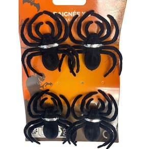 Feitas de isopor, plástico e pelúcia, essas aranhas são leves e fáceis de posicionar onde desejar. Com um tamanho de 6x6cm, elas são ideais para serem colocadas em mesas, paredes, portas e até mesmo nas teias de aranha falsas.