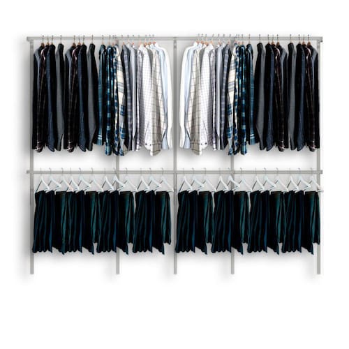 Este modelo é recomendado para montagem de lojas, lavanderias ou residências. O trilho graduado contribui para o fácil deslocamento de altura dos cabideiros ou mesmo a remoção de um deles em caso de vestidos ou casacos longos.