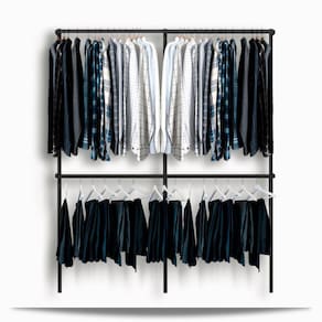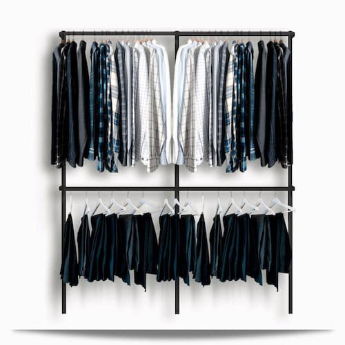 Este modelo é recomendado para montagem de lojas, lavanderias ou residências. O trilho graduado contribui para o fácil deslocamento de altura dos cabideiros ou mesmo a remoção de um deles em caso de vestidos ou casacos longos.