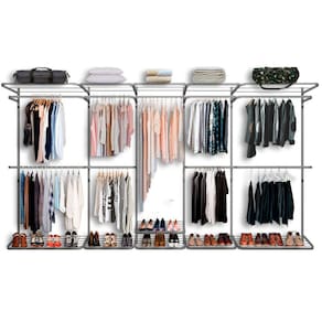 Este produto possui uma configuração unissex, contendo cabideiro com dois níveis e cabideiro para longos. As prateleiras / maleiros pontuam os módulos fazendo o perímetro, assim como as sapateiras na parte inferior. Você poderá brincar com as peças intercambiando entre módulos.
