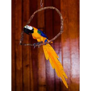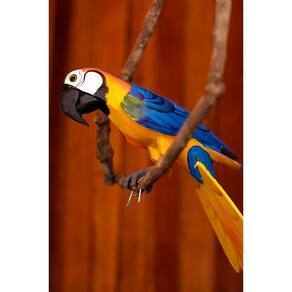 Arara Canindé de madeira, para decoração de ambientes externos, como: varandas, jardins e áreas gourmet. Produto de origem artesanal, esculpido e pintado à mão. Tamanho: 95 x 12 x 12 cm Como montar: encaixe os dois pés no corpo da arara. após esse procedimento, encaixe os pés já fixados, no cipó arco , que contém dois furos para encaixe. Cipó arco de madeira já incluso. Marca: Não Informado