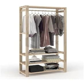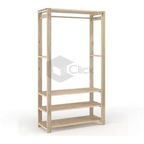 Estante arara com prateleiras e estrutura em madeira maciça de Pinus.