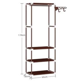Portátil e Multifuncional: Este rack de roupas é portátil e oferece espaço para pendurar roupas, além de prateleiras adicionais para armazenamento de outros itens, como sapatos, bolsas e acessórios.
