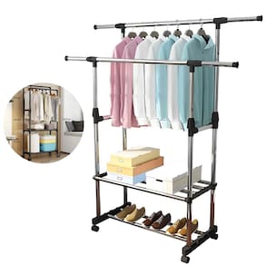 Nome: Arara Dupla Regulável Cabideiro Sapateira Aço Inox Cod: FUY853 Cor: Preto Suporta: 30 KG Material: 410 plásticos de engenharia de aço inoxidável cautela para operação: Por favor, use-o dentro do escopo de sua capacidade de carga Limpar com detergente neutro diluído.