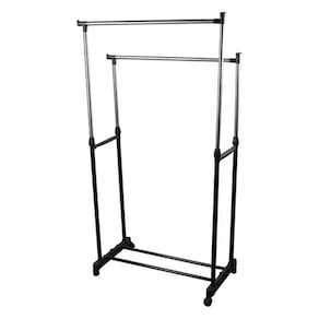 Nome: arara dupla regulável cabideiro sapateira aço inox Cod: fuy853 Cor: preto Suporta: 30 kg Material: 410 plásticos de engenharia de aço inoxidável cautela para operação: Por favor, use-o dentro do escopo de sua capacidade de carga Limpar com detergente neutro diluído. Marca: Não Informado Ean: 7908214745843