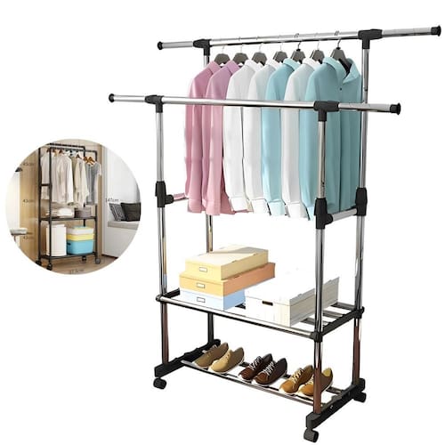 Arara dupla regulável cabideiro sapateira aço inox - organize seu guarda-roupa com estilo e praticidade