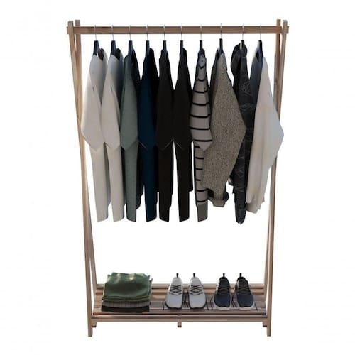 A Arara é produzida com madeira de Pinus secas em estufa, e possui Cabideiro e Prateleira tanto para roupa como para sapateira, tem fácil locomoção.