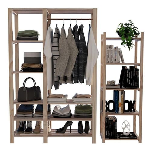 - Estante com prateleiras e estrutura em madeira maciça de Pinus.