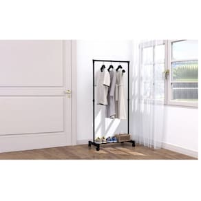 Modelo: Arara com Rodízios Cor: Preto, ideal para qualquer ambiente Dimensões: Altura: 157 cm Largura: 74,5 cm Profundidade: 41,5 cm Capacidade: Suporta até 10 kg