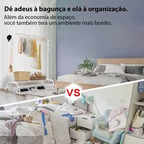 Este cabideiro é fácil de montar e possui uma estrutura estável e resistente. Seu tamanho compacto torna ideal para closets de todos os tamanhos, otimizando o espaço disponível. Mantenha seu closet organizado e suas roupas impecáveis.