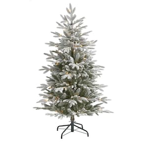 Árbol de Navidad artificial Nearly Natural de 1.4 m (4.5 pies) tipo abeto Manchester escarchado, con 100 luces y 357 ramas flexibles.