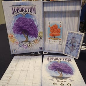 Arboretum - ConclaveEm nenhum lugar a beleza da natureza é tão evidente como na cores resplandescentes de um arboreto. Em Arboretum, você cria caminhos cuidadosamente planejados para seus visitantes caminharem observando a explosão colorida de botões e folhas.A alegre flor de cerejeira, o perfumado corniso, o poderoso carvalho - todos têm lugar neste paraíso de paz. Mas o ambiente tranquilo é desmentido pelo coração competitivo do jogo. Você deve escolher quais cartas plantar em seu arboreto e quais manter na mão, pois somente o curador mais experiente conquistará o renome entre os entusiastas da natureza de todos os lugares.Componentes:80 cartas1 bloco de pontuaçãoRegras- Idade: 14+-tempo: 30 min-jogadores: 2-4-idioma: Português-lançamento: Dezembro/2021-editora: Conclave-condição: Novo-designer: Dan Cassar-artista: Beth Sobel-mecânicas: Gestão de Mão, Colecionar Componentes, Colocação de Peças-perfil do jogo: Jogo familiar, jogo de cartas- Sleeves não acompanham o produto : 80 sleeves tamanho Chimera 57.0 mm X 89.0 mm