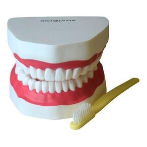 Modelo ampliado de arcada dentária com 32 dentes e língua, com movimento articular, desenvolvido para estudo e demonstração da higiene bucal.Material:Confeccionado em resina plástica emborrachada.Composto por:Arcada dentária com língua.O modelo TZJ-0312-B permite:Estudo e demonstração da higiene bucal;Demonstração de diversas forma de utilização da escova dental; Movimento articular da boca.Acompanha:Manual do usuário em português; Escova dental.Comprimento x Largura x Altura:29 cm x 23 cm x 18 cmPeso:2,42 kgGarantia: 1 anoAs imagens são meramente ilustrativas, as descrições podem sofrer alterações sem aviso prévio.