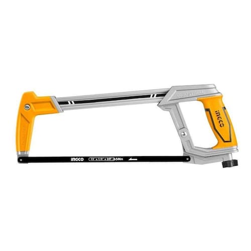 revestida em borracha termoplástica, plástico ABS e alumínio para uma ótima aderência nas mãos. Feito em material resistente, reforçado e durável Tensão ajustável Mecanismo de troca rápida de lâminas Já acompanha lâmina de serra Ângulo de corte 45 e 90 graus