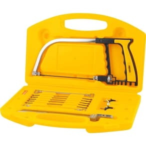 1 Maleta com 12 peças (1 arco de serra (com lâmina); 5 lâminas de aço; 2 lâminas diamantadas; 1 lâmina tipo serrote; 1 parafuso borboleta; 2 furadores).