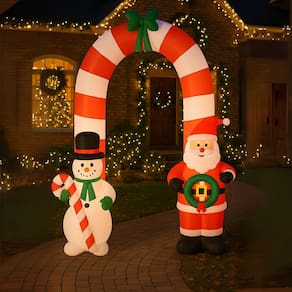 Transforme sua decoração natalina com um toque mágico e encantador com o Arco Inflável Natalino com LED, modelo gigante de 2,4 metros de altura, que traz todo o espírito do Natal em grande estilo! Com visual vibrante e alegre, o arco possui listras vermelhas e brancas, laço verde central decorativo, e nas laterais os personagens mais queridos da época: Papai Noel e Boneco de Neve, ambos sorridentes e prontos para receber seus convidados.