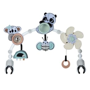 Características: Indicado para: Desde o nascimento Arco ajustável: Ângulo facilmente ajustável para facilitar o alcance do bebê Atividades sensoriais e motoras: -Coala crocante: Estimula os sentidos táteis e auditivos -Arco-íris fácil de pegar: Desenvolve habilidades motoras finas -Prisma solar com panda crocante: Estimula o bebê a explorar diferentes texturas e sons -Abelha chocalho: Aumenta a percepção sonora -Hélice ativada pelo bebê: Ensina a relação entre causa e efeito Clipes universais: Compatíveis com a maioria dos carrinhos e moisés