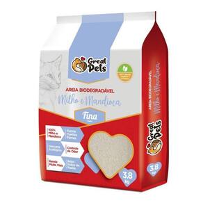 Areia Biodegradável Milho E Mandioca Fina Great Pets 3,8kg A Areia Biodegradável de Milho e Mandioca da Great Pets é uma escolha sustentável e eficiente para cuidar da higiene do seu gato. Feita exclusivamente de 100% Milho e Mandioca, esta areia é fabricada nacionalmente em pacotes de 3,8kg. Ideal para todas as raças e tamanhos de gatos, caracteriza-se por sua composição natural, orgânica, atóxica e aglomerante. Proporciona descarte ecológico, excelente capacidade de absorção com baixo índice de umidade, formação de torrão firme e instantânea, e alto rendimento, durando até 30 dias para um gato. Além disso, oferece ótimo controle de odores. A fácil limpeza da caixa de areia, que não gruda, e o baixo desperdício, sendo 100% absorvível, garantem praticidade no dia a dia. A cor clara da areia também permite identificar alterações na urina do gato, facilitando a monitorização da saúde do seu animal de estimação. Escolha a Areia Biodegradável de Milho e Mandioca da Great Pets para uma solução sustentável, eficiente e prática na higiene do seu gato! Informações: - 100% Milho e Mandioca - Forma Torrões Firmes - Descarte Ecológico - Controle de Odor - Rende Muito Mais - Baixo Indice de Poeira Conteúdo: - 1 Pacote Areia Biodegradável Fina