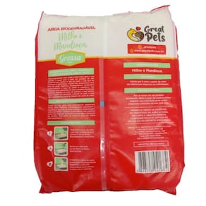Areia Biodegradável Milho E Mandioca Grossa Great Pets 3,8kg A Areia Biodegradável de Milho e Mandioca da Great Pets é uma escolha sustentável e eficiente para cuidar da higiene do seu gato. Feita exclusivamente de 100% Milho e Mandioca, esta areia é fabricada nacionalmente em pacotes de 3,8kg. Ideal para todas as raças e tamanhos de gatos, caracteriza-se por sua composição natural, orgânica, atóxica e aglomerante. Proporciona descarte ecológico, excelente capacidade de absorção com baixo índice de umidade, formação de torrão firme e instantânea, e alto rendimento, durando até 30 dias para um gato. Além disso, oferece ótimo controle de odores, e a versão Grossa reduz o rastro, evitando que os grãos fiquem retidos nas patas do seu animal. A fácil limpeza da caixa de areia, que não gruda, e o baixo desperdício, sendo 100% absorvível, garantem praticidade no dia a dia. A cor clara da areia também permite identificar alterações na urina do gato, facilitando a monitorização da saúde do seu animal de estimação. Escolha a Areia Biodegradável de Milho e Mandioca da Great Pets para uma solução sustentável, eficiente e prática na higiene do seu gato! Informações: - 100% Milho e Mandioca - Forma Torrões Firmes - Descarte Ecológico - Controle de Odor - Rende Muito Mais - Baixo Indice de Poeira Conteúdo: - 1 Pacote Areia Biodegradável Grossa
