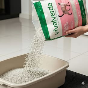 A limpeza deve ser diária para evitar o mau cheiro e proporcionar qualidade de vida para seu pet. Areia Higiênica Viva Verde Vida descomplicada Biodegradável - Bio Grossa