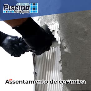 Utilização Pode ser utilizada para assentamento e rejuntamento simultâneo de pastilhas, azulejos, pisos e revestimentos cerâmicos, porcelanatos de médios e grandes formatos, e pedras naturais. Indicada para aplicação em piscinas, tanques, espelhos d’ água e áreas frias: banheiros, cozinhas e áreas de serviços, em ambientes internos ou externos. As pastilhas devem ter dimensão mínima de 2x2 cm e máxima de 15x15 cm. A Argamassa Piscina Autofugante Impermeável também pode ser utilizada para aplicação de camada impermeabilizante em piscinas e espelhos d’água, sendo para essa finalidade aplicada em camadas e com espessura final de 5mm.
