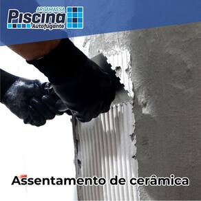 Características Argamassa Piscina Autofugante Impermeável foi desenvolvida com a finalidade de assentamento e rejuntamento simultâneo de pastilhas, revestimentos cerâmicos, porcelanatos de médios e grandes formatos, e pedras naturais. Possui alta aderência e resistência, produto inodoro e não tóxico. Pode ser aplicada em ambientes internos e externos. Atende aos requisitos das normas ABNT NBR14992 e NBR 14081.