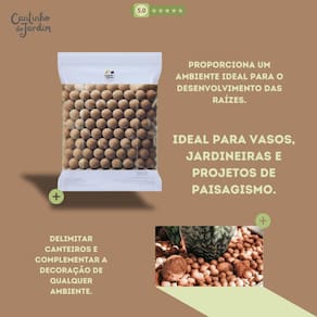 Está procurando uma solução natural e elegante para decorar seu jardim e cuidar das suas plantas A Argila Expandida é a escolha perfeita para quem deseja unir beleza, praticidade e eficiência na jardinagem. Ideal para a decoração de jardins, vasos e jardineiras, ela oferece drenagem impecável e um acabamento sofisticado para seus projetos paisagísticos. Características do Produto: Material natural e leve: Produzida a partir de argila expandida, garantindo durabilidade e alta capacidade de drenagem. Cor marrom-avermelhada: Traz um tom natural e elegante que complementa perfeitamente o visual do seu jardim. Tamanho ideal: Embalagem perfeita para diversas aplicações em jardinagem e decoração de espaços externos. Uso interno e externo: Resistente ao clima, ideal tanto para jardins ao ar livre quanto para vasos internos. Pronto para uso: Não requer preparação adicional, basta aplicar e transformar seu jardim. Benefícios: Proporciona excelente drenagem, evitando o acúmulo de água e o encharcamento do solo. Aerando o solo, ela favorece o crescimento saudável das plantas, especialmente as que exigem boa ventilação nas raízes. Produto ecológico e sustentável, perfeito para quem busca soluções naturais para a jardinagem. Aplicações mais comuns: Decoração de vasos e jardineiras: Ideal para criar um acabamento bonito e funcional em plantas decorativas. Substrato para plantas e flores: Melhora a drenagem e a aeração do solo, proporcionando um ambiente saudável para o crescimento das raízes. Cobertura de solo em canteiros: Perfeita para proteger o solo e evitar o apodrecimento das raízes por excesso de umidade. Projetos paisagísticos: Pode ser utilizada em jardins e projetos de paisagismo, criando texturas naturais e elegantes. 1. A argila expandida pode ser Utilizado para decorar vasos Sim, ela é ideal para decorar vasos, proporcionando um acabamento sofisticado enquanto melhora a drenagem das plantas. 2. Ela ajuda na manutenção das plantas no jardim Sim, a argila expandida é excelente para manter a umidade controlada e melhorar a aeração das raízes, garantindo o crescimento saudável das suas plantas. 3. A argila expandida pode ser Utilizado em jardins externos Sim, ela é resistente às condições climáticas, tornando-a perfeita para o uso em jardins ao ar livre, tanto em plantas ornamentais quanto em hortas. Transforme seu jardim e vasos com a beleza natural e funcional da Argila Expandida. Adicione ao carrinho e comece a decoração do seu espaço verde hoje mesmo Marca: Não Informado