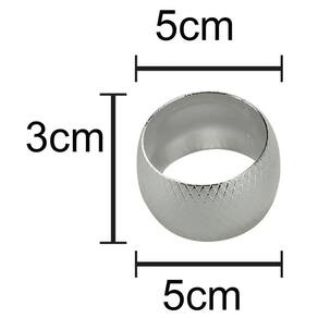 Argola de Guardanapo Metal Prateado com 4 Peças Bon Gourmet Conjunto 4 anéis para guardanapos metal prateado. Os anéis para guardanapo são confeccionados em aço inox, a escolha certa para você que busca por sofisticação e originalidade a mesa, perfeito para decorar e compor sua mesa posta Altura: 3cm Diâmetro: 5cm Material: Metal Marca: Oren Ean: 7895730607352
