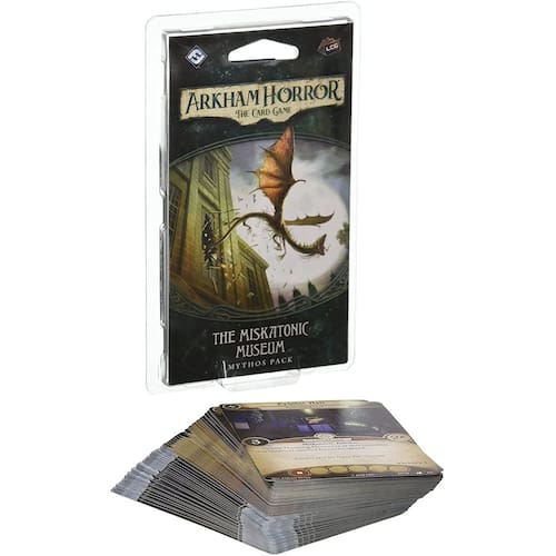 "Mais de dois metros de altura, e carregando uma valise nova e barata da loja geral do Osborn, este gárgula sombrio e com aspecto de cabra apareceu um dia em Arkham buscando o temível volume mantido sob tranca e chave na biblioteca da universidade - o nefasto Necronomicon do árabe louco Abdul Alhazred na versão latina de Olaus Wormius."- H. P. Lovecraft, "The Dunwich Horror"Começa com um livro... em algum lugar do Museu de Miskatonic, se esconde a tradução em Latim por Olaus Wormius de um livro chamado Necronomicon, mantido trancado e em segredo para que ninguém tenha acesso a ele. Quando recentes eventos na Universidade e no Clube Clover levam você a acreditar que alguém pode estar agora procurando por este estranho e antigo tomo - alguém que não deveria alcançar seus segredos -, você segue o caminho até o museu. É tarde da noite, e a porta da frente está fechada. Mas você sabe que deve recuperar o livro antes que alguém tenha acesso a seus segredos arcanos com propósitos sombrios em mente."The Miskatonic Museum" é o primeiro Mythos Pack do Ciclo "The Dunwich Legacy". Nele, você encontra 26 cartas de jogador (duas cópias de cada) contendo novos Talentos, Posses e Feitiços. Além disso, o Pack vem com um novo baralho de encontros que continua a campanha iniciada na Deluxe "The Dunwich Legacy".Que segredos aguardam os Investigadores enquanto continuam sua busca aos estudiosos desaparecidos no Museu da Universidade de Miskatonic?