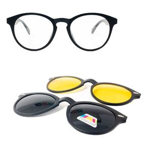Conjunto De Clip On 3 Em 1 - Armação + Lente De Sol Preto Polarizado + Lente Amarela Visão Noturna O conjunto de armação de óculos mais clip on é um modelo versátil podendo adicionar duas cores diferentes de lentes, moderno, sem perder o estilo, combina com qualquer formato de rosto e alem de ser resistente, leve e confortável. Lentes Preto/Cinza Polarizado: as lentes polarizadas proporcionam uma visão mais nítida e confortável, garantindo proteção máxima contra os raios nocivos do sol UVA/UVB (400nm), reduzindo o risco de desenvolvimento de doenças oculares e proporcionando o máximo de saúde para os seus olhos.
