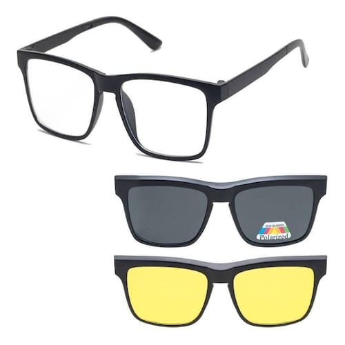 Conjunto de clip on 3 em 1 - + óculos de sol preto polarizado + óculos amarelo visão noturna O conjunto de de óculos mais clip on é um modelo versátil podendo adicionar duas cores diferentes de lentes, moderno, sem perder o estilo, combina com qualquer formato de rosto e alem de ser resistente, leve e confortável. Lentes preto/cinza polarizado: as lentes polarizadas proporcionam uma visão mais nítida e confortável, garantindo proteção máxima contra os raios nocivos do sol uva/uvb 400nm , reduzindo o risco de desenvolvimento de doenças oculares e proporcionando o máximo de saúde para os seus olhos. Lentes amarelo visão noturna : as lentes amarelas são para uso noturno, pois elas reduzem os reflexos indesejados, aumentam a visibilidade e equilíbrio visual ao dirigir a noite contra luz de farol e/ou chuva, protegendo seus olhos com conforto e segurança, assim evitando possíveis acidentes. Confira as medidas na foto do anuncio Itens inclusos: 1 1 clip on lentes preto/cinza polarizado 1 clip on lentes amarelo para dirigir a noite visão noturna 1 estojo 1 lenço microfibra - Importante/cuidados: Não utilizar produtos químicos na limpeza de suas lentes e ; Não deixar sua exposta em altas temperaturas para não causar deformações, por exemplo, óculos deixados em painéis de veículos ao sol; acompanha lentes descartáveis sem grau. Consulte sua ótica para saber quais tipos de lentes são ideais para sua . Qualquer dúvida estamos a disposição no campo de perguntas. Agradecemos, boas compras Equipe multimegamix As fotos desse anuncio são registradas com direitos autorais E protegidas pela lei n9.610, seu uso é proibido sem autorização Marca: Oculos20V