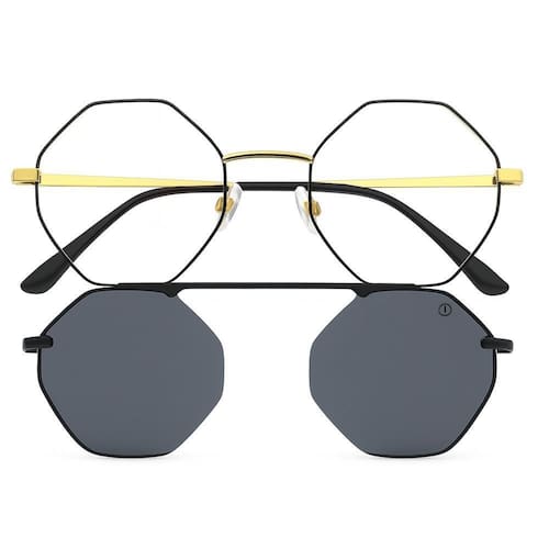 Elegatto Clip On Octogonal 2 em 1 Cor da : Dourada/Preta Cor de Lente: Preta A Elegatto traz para você óculos elegantes, atemporais e confortáveis, daqueles que você não vai querer tirar do rosto Loja Oficial da marca Elegatto. Descrição do Produto: Haste de Metal Frente de Metal Almofada de Nariz Ajustável Comprimento da Frente: 13,6 cm Comprimento da Haste: 14,2 cm Comprimento da Lente: 5,2 cm Altura da Lente: 4,8 cm Aro Integral Ponte Simples Acompanha 1 Frente Solar com proteção UV 400 Clip On com Imã Modelo: Elegatto OA2 Marca: Não Informado
