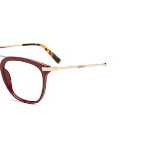 A cor da armação é bordô e dourado brilho, garantindo um toque de sofisticação ao seu estilo. Além disso, os detalhes em metal duplo na ponte trazem delicadeza e charme ao modelo.