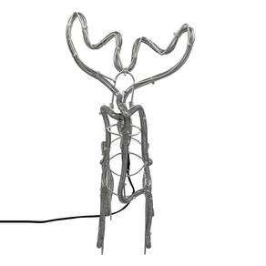 Armação Rena Macho de Led Média - 220v Rena Led Natalina Essa decoração vai deixar o clima natalino ainda mais especial, tornando o momento inesquecível. transforme qualquer espaço da sua casa em um cenário mágico e espalhe o espírito natalino para encantar a todos os familiares e amigos. ESPECIFICAÇÕES: - Tamanho: 45cm altura x 46cm comprimento x 13cm largura rena x 25cm largura do chifre - Composição: Metal e plástico - Cor: Luz Branca Fria - 112 Lâmpada LED - Voltagem: 220V CONTÉM: 01 Rena de Led 220v