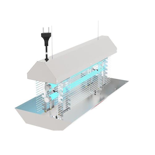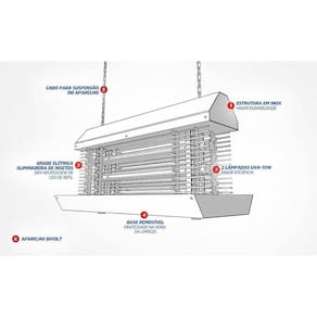 ======== indústria brasileira ========---------------- direto de fábrica ----------------Modelo extinsect dg-01 - armadilha luminosa super abrangência. modelo de teto O modelo dg-01 utiliza lâmpadas uv-a com frequência de onda especifica, atraindo os insetos para sua grade que libera uma pequena descarga elétrica, eliminando-os de forma eficaz e segura. Tem sua instalação como um lustre pendente no teto com ampla área de atuação.Os aparelhos mata moscas extinsect são feitos em aço inox e alumínio, garantindo assim sua leveza, higiene e durabilidade. Ideal para todos os locais que necessitam de um controle efetivo e seguro, das possíveis contaminações causadas por insetos voadores.É comprovadamente um sistema eletrônico eficaz, prático e higiênico, sem a utilização de produtos químicos.======== equipamento de acordo com as normas da anvisa ========- anvisa: as armadilhas luminosas de eletrocussão são permitidas, conforme "resolução anvisa rdc n.216"- características:- cor: inox- área de atuação: máximo 80m²- tipo de lâmpada: 2x lâmpada uva-15w- voltagem: bivolt chave seletora - potência máxima: 40 watts- indicação: serve para todos os ambientes- modo de funcionamento: automático- tipos de inseto que elimina: voadores- ambiente: uso comercial, industrial e doméstico- garantia: aparelho: 9 meses + 3 meses cdc | lâmpadas - 3 meses cdc- produz vapor: não- aplicação:- as armadilhas luminosas são equipamentos importantes no controle integrado de pragas cip e principalmente para o combate aos insetos voadores.- modo de uso:- basta conectá-lo na tomada e os insetos que estiverem próximos serão atraídos pela luz.
