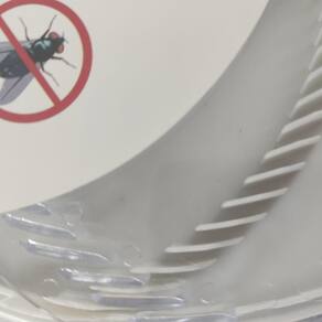 Com esta armadilha de moscas voce precisa apenas colocar uma isca para atrair os insetor, como mel, alguma pequena sobra de comida que caiba na armadilha.