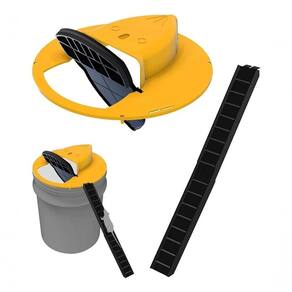 Modo de uso: Encaixe a tampa amarela em um balde, tenha atenção as medidas do produto, após isso encaixe a rampa na tampa para os ratos possam subir em seguida o alçapão. Como mostra o vídeo.