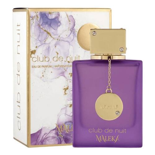 Club De Nuit Maleka de Armaf é um perfume Floral Frutado Feminino. Esta é uma nova fragrância. Club De Nuit Maleka foi lançada em 2025. O perfumista que assina esta fragrância é Olivier Cresp. As notas de topo são: Lichia, Bergamota e Pimenta Rosa. A nota de coração é Raíz de Orris. As notas de fundo são: Pralinê, Ambroxan e Sândalo.