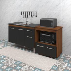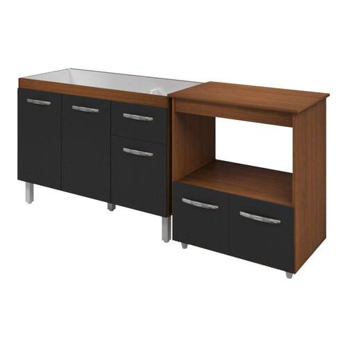 Armário Gabinete Pia De 120 Cm Com Balcão Multiuso Micro-ondas Forno Elétrico Savana Frente Preta