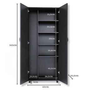 Altura: 160 cmLargura: 60 cmProfundidade: 30,5 cmPeso suportado: 20 kgPeso do móvel: 25,4 kgCor: PretoAcabamento: FoscoAltura entre as prateleiras de cima para baixo: