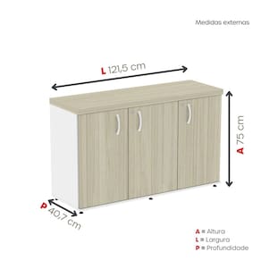 Ideal para escritórios, salas de reunião ou home office. Acabamento da Porta: BP Acabamento da Prateleira: BP Acabamento dos Pés: Polipropileno Ambiente Principal: Escritório Armário Suspenso: Não codigo_ean: 7900288232342 Complexidade da Montagem: Média: pode ser montado por mais de uma pessoa e/ou necessite de maior conhecimento para montagem Cor: Branco/Castanheira Cor do Produto: Branco/Castanheira Cor Interna: Branco Escala de Brilho: Semi-Fosco Escala de Brilho da Porta: Semi-Fosco Escala de Brilho da Prateleira: Semi-Fosco Espessura do Tampo: 40 mm Formato do Armário: Retangular Itens Inclusos: 1 Armário e Kit Ferragens Linha ou Coleção: PE40 Manual de Montagem e Instalação: https://product-hub-prd.madeiramadeira.com.br/716117049/documents/6b877856-87af-4a04-8e19-55b6cdd16f23a3144221387017555271061887.pdf Marca: Pandin Móveis Material da Porta: MDP Material da Prateleira: MDP Material do Puxador da Porta: Poliestireno Material dos Pés: Polipropileno Material Principal: MDP Necessita Montagem: Sim Orientação do Armário: Horizontal Origem do Produto: Nacional Pés Reguláveis: Sim Peso: 38,804 kg Peso Máximo por Prateleira: 15 kg Possui Espelho: Não Possui Mesa Retrátil: Não Possui Nicho: Não Possui Pés: 06 Possui Portas: 03 Possui Prateleiras: 03 Quantidade de Armários: 1 Recomendações de Uso, Manutenção e Limpeza: Utilizar um pano levemente umedecido com água, para finalizar utilizar um pano seco. Sapatas Niveladoras: Sim Sistema de Montagem: parafuso Suporta Até (kg): 45 kg Tamanho do Armário: Baixo (Até 90cm) Tipo de Armário: Totalmente Fechado Tipo de Dobradiça/Corrediça da Porta: Aço Tipo de Puxador da Porta: Externo Marca: Não Informado