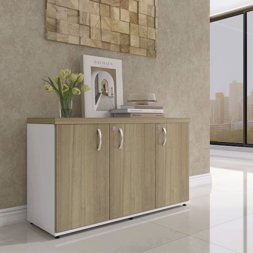 É a escolha perfeita para quem busca praticidade, organização e design sofisticado em ambientes corporativos ou home office. Com 3 portas pivotantes, oferece amplo espaço interno para guardar documentos, materiais de escritório ou objetos pessoais, mantendo tudo sempre em ordem. Fabricado em MDP de alta qualidade e acabamento resistente, garante durabilidade e fácil limpeza no dia a dia. Seu design moderno combina perfeitamente com outros móveis da linha Pandin, proporcionando elegância e funcionalidade ao ambiente.