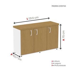 Ideal para escritórios, salas de reunião ou home office. Acabamento da Porta: BP Acabamento da Prateleira: BP Acabamento dos Pés: Polipropileno Ambiente Principal: Escritório Armário Suspenso: Não codigo_ean: 7900288220493 Complexidade da Montagem: Média: pode ser montado por mais de uma pessoa e/ou necessite de maior conhecimento para montagem Cor: Branco/Samba Cor do Produto: Branco/Samba Cor Interna: Branco Escala de Brilho: Semi-Fosco Escala de Brilho da Porta: Semi-Fosco Escala de Brilho da Prateleira: Semi-Fosco Espessura do Tampo: 40 mm Formato do Armário: Retangular Itens Inclusos: 1 Armário e Kit Ferragens Linha ou Coleção: PE40 Manual de Montagem e Instalação: https://product-hub-prd.madeiramadeira.com.br/395416050/documents/47d56edd-2b25-46a3-b690-f0fd831ccfafa3144221387017555271061887.pdf Marca: Pandin Móveis Material da Porta: MDP Material da Prateleira: MDP Material do Puxador da Porta: Poliestireno Material dos Pés: Polipropileno Material Principal: MDP Necessita Montagem: Sim Orientação do Armário: Horizontal Origem do Produto: Nacional Pés Reguláveis: Sim Peso: 38,804 kg Peso Máximo por Prateleira: 15 kg Possui Espelho: Não Possui Mesa Retrátil: Não Possui Nicho: Não Possui Pés: 06 Possui Portas: 03 Possui Prateleiras: 03 Quantidade de Armários: 1 Recomendações de Uso, Manutenção e Limpeza: Utilizar um pano levemente umedecido com água, para finalizar utilizar um pano seco. Sapatas Niveladoras: Sim Sistema de Montagem: parafuso Suporta Até (kg): 45 kg Tamanho do Armário: Baixo (Até 90cm) Tipo de Armário: Totalmente Fechado Tipo de Dobradiça/Corrediça da Porta: Aço Tipo de Puxador da Porta: Externo Marca: Não Informado