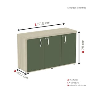 Ideal para escritórios, salas de reunião ou home office. Acabamento da Porta: BP Acabamento da Prateleira: BP Acabamento dos Pés: Polipropileno Ambiente Principal: Escritório Armário Suspenso: Não codigo_ean: 7900288231628 Complexidade da Montagem: Média: pode ser montado por mais de uma pessoa e/ou necessite de maior conhecimento para montagem Cor: Castanheira/Salvia Cor do Produto: Castanheira/Salvia Cor Interna: Castanheira/Preto Escala de Brilho: Semi-Fosco Escala de Brilho da Porta: Semi-Fosco Escala de Brilho da Prateleira: Semi-Fosco Espessura do Tampo: 40 mm Formato do Armário: Retangular Itens Inclusos: 1 Armário e Kit Ferragens Linha ou Coleção: PE40 Manual de Montagem e Instalação: https://product-hub-prd.madeiramadeira.com.br/473599314/documents/e9ff6228-c627-472f-9513-cbf020870ffea3144221387017555271061887.pdf Marca: Pandin Móveis Material da Porta: MDP Material da Prateleira: MDP Material do Puxador da Porta: Poliestireno Material dos Pés: Polipropileno Material Principal: MDP Necessita Montagem: Sim Orientação do Armário: Horizontal Origem do Produto: Nacional Pés Reguláveis: Sim Peso: 38,804 kg Peso Máximo por Prateleira: 15 kg Possui Espelho: Não Possui Mesa Retrátil: Não Possui Nicho: Não Possui Pés: 06 Possui Portas: 03 Possui Prateleiras: 03 Quantidade de Armários: 1 Recomendações de Uso, Manutenção e Limpeza: Utilizar um pano levemente umedecido com água, para finalizar utilizar um pano seco. Sapatas Niveladoras: Sim Sistema de Montagem: parafuso Suporta Até (kg): 45 kg Tamanho do Armário: Baixo (Até 90cm) Tipo de Armário: Totalmente Fechado Tipo de Dobradiça/Corrediça da Porta: Aço Tipo de Puxador da Porta: Externo Marca: Não Informado