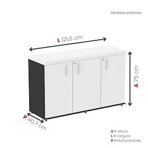 Ideal para escritórios, salas de reunião ou home office. Acabamento da Porta: BP Acabamento da Prateleira: BP Acabamento dos Pés: Polipropileno Ambiente Principal: Escritório Armário Suspenso: Não codigo_ean: 7900288220837 Complexidade da Montagem: Média: pode ser montado por mais de uma pessoa e/ou necessite de maior conhecimento para montagem Cor: Preto/Branco Cor do Produto: Preto/Branco Cor Interna: Preto Escala de Brilho: Semi-Fosco Escala de Brilho da Porta: Semi-Fosco Escala de Brilho da Prateleira: Semi-Fosco Espessura do Tampo: 40 mm Formato do Armário: Retangular Itens Inclusos: 1 Armário e Kit Ferragens Linha ou Coleção: PE40 Manual de Montagem e Instalação: https://product-hub-prd.madeiramadeira.com.br/498904308/documents/abf449f2-f035-4b8d-b95b-faaf533e8158a3144221387017555271061887.pdf Marca: Pandin Móveis Material da Porta: MDP Material da Prateleira: MDP Material do Puxador da Porta: Poliestireno Material dos Pés: Polipropileno Material Principal: MDP Necessita Montagem: Sim Orientação do Armário: Horizontal Origem do Produto: Nacional Pés Reguláveis: Sim Peso: 38,804 kg Peso Máximo por Prateleira: 15 kg Possui Espelho: Não Possui Mesa Retrátil: Não Possui Nicho: Não Possui Pés: 06 Possui Portas: 03 Possui Prateleiras: 03 Quantidade de Armários: 1 Recomendações de Uso, Manutenção e Limpeza: Utilizar um pano levemente umedecido com água, para finalizar utilizar um pano seco. Sapatas Niveladoras: Sim Sistema de Montagem: parafuso Suporta Até (kg): 45 kg Tamanho do Armário: Baixo (Até 90cm) Tipo de Armário: Totalmente Fechado Tipo de Dobradiça/Corrediça da Porta: Aço Tipo de Puxador da Porta: Externo Marca: Não Informado