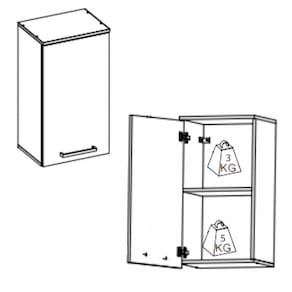 Características: 1 Porta 1 Prateleira Dobradiça de 35mm c/ amortecimento Estrutura em MDP 15mm Fundo 3mm Peso máximo suportado 8kg Puxador em plástico Sistema de montagem cavilha e parafusos