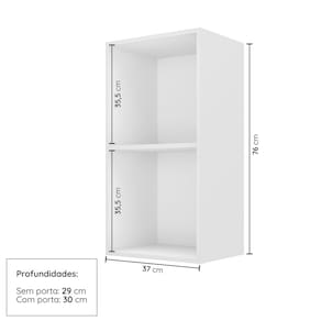 Informações Complementares: Porta de bater almofadada/moldurada em MDF 4mm, dobradiças de 35mm, prateleira interna, puxador retrô em alumínio.